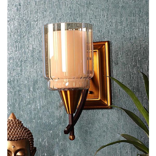 Brand: Eliante Name: Eliante Antique Gold 9W Iron Outdoor Wall Light. Module Code: LL2173675-S-PM31431 Product Description- Be it a contemporary or modern setting, this uniquely designed Hanging Light allows you to experience the beauty of a well lit room. It exudes a sense of class and elegance with a stylish and well designed wall light that will embellish your home and also brightens the aura of the place. Pack Content- 1 Wall Light. No of light: 1. Base Material- Iron. Shade Material- Glass. Base Colour- Black. Shade Colour- Gold. No. of Bulb Holders- 1. Bulb Included- No. Bulb Recommended (Watt)- 9 Watt. LED InBuilt- No. Holder & Plug type- E27 holder. Power Source- Electric Operated. Dimensions (In Centimeters)