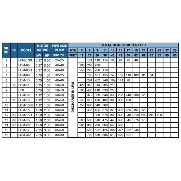 - Manufactured using a much-sophisticated control process to ensure reliability & long life of the pump.