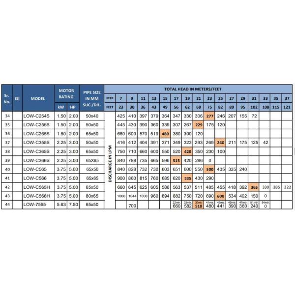 - Bearing Bush: Bronze Bush LTB-4, Volute: Cast iron FG 200.