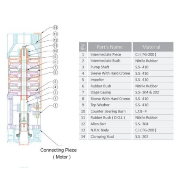 Borewell Size: 150mm.