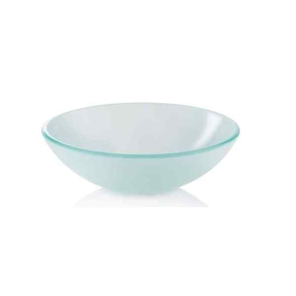 Product Description Modern Glass Vessel Sink - Above Counter Bathroom Vanity Basin Bowl - Round Frosted. OUTSTANDING VALUE: This premium glass bowl sink offers exceptional value compared to nearly identical models available in custom home designer showrooms and even home improvement superstores. SLEEK ELEGANT DESIGN: Add high-style to any bathroom or bar vanity with this sleek and contemporary tempered glass sink bowl, which offers modern, minimalist elegance and glamour to instantly update any room. UNSURPASSED QUALITY: This oval boat clear sink has been expertly crafted to strikingly balance beautiful design with lasting performance. Bowl is meticulously finished with flawless precision, and pre-drilled with a perfectly-centered, beveled drain hole. ULTRA-DURABLE: Made from high-grade, single layer tempered glass, this 1/2" thick glass bowl is especially designed for impact-resistance, and features a stain and scratch-resistant surface to withstand everyday wear and maintain its luster, year after year. EASY TO INSTALL: Experience hassle-free installation, as bowl comes complete with a standard sized (1-3/4" diameter) drain opening, allowing for the use of any standard non-overflow type drain. Can be mounted either above-counter or partially recessed into the countertop.